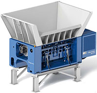 原料の減容処理、二次破砕原料の生産に適した1軸シュレッダー。 強力なエンジンと特殊な破砕刃により、多様な原料をパワフルに破砕します。