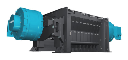 - 耐久性に優れた2本のローター(破砕軸)に取り付けられた破砕刃で原料を確実に破砕します。