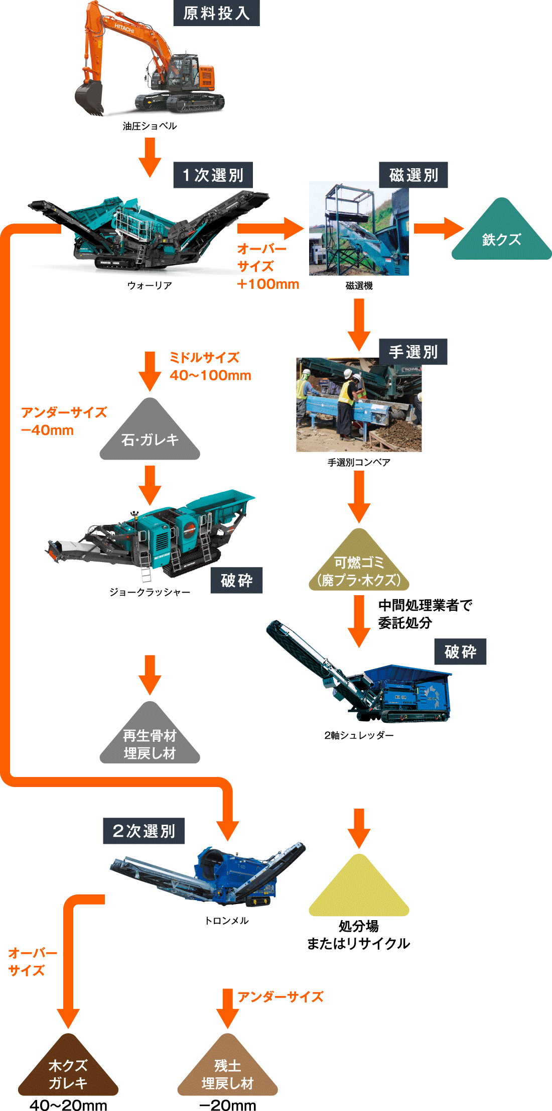 原料の選別から破砕まで高い精度で活躍しています。