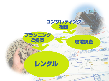 お客様のご要望は多様化しています。 現場また目的に合わせて、環境機器をどのように活用していくのか最適なソリューションが常に求められています。 環境機器の能力を最大限に発揮させるためには、「原料に応じた機器の組合せ」「セッティング」「メンテナンス」が重要です。 リョーキの環境機器部門は、破砕プラント・環境機器販売事業で培った経験とエンジニアリング力で、商品のご提供だけでなく、お客様のご要望にお応えする処理方法を提案し、お客様のリサイクル事業とコスト削減に貢献します。